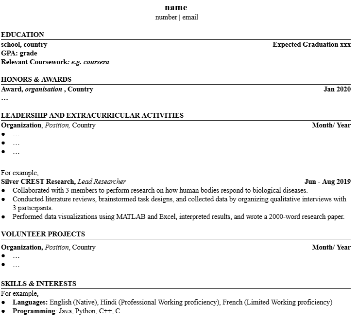 - Applying for internships, research roles, or part-time jobs